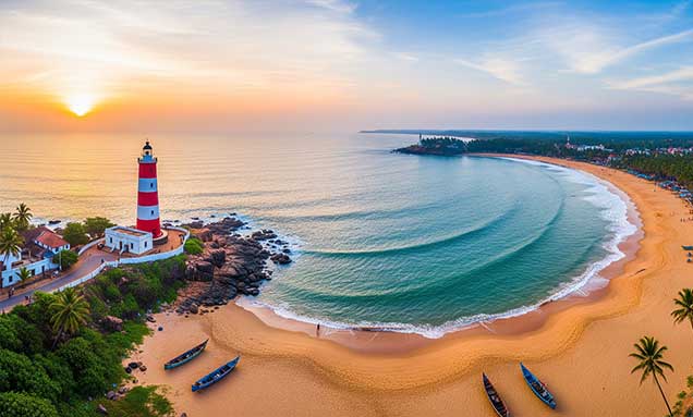 Just a short drive from the city, Kovalam is Kerala’s most famous beach destination, known for its crescent-shaped coastline, golden sands, and calm waters. The iconic lighthouse, sun-drenched shores, and Ayurvedic retreats make it the perfect blend of leisure and rejuvenation