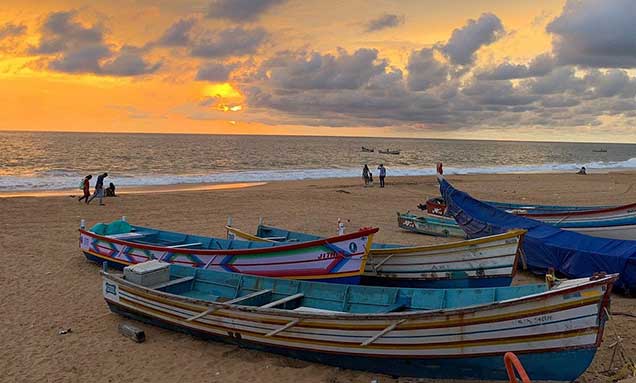 Located close to the airport, Shankumugham Beach is a serene stretch known for its long promenade, sculptures, and sunset views.